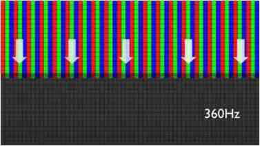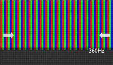 传统液晶驱动是从左到右单向进行,,,,在画面更新速度愈来越愈快的情况下,,,,位于驱动线路末端的右下角区域,,,画素的闸极来不及在短时间内获得足够电压,,,无法显示出正确的颜色资讯。。。。 |